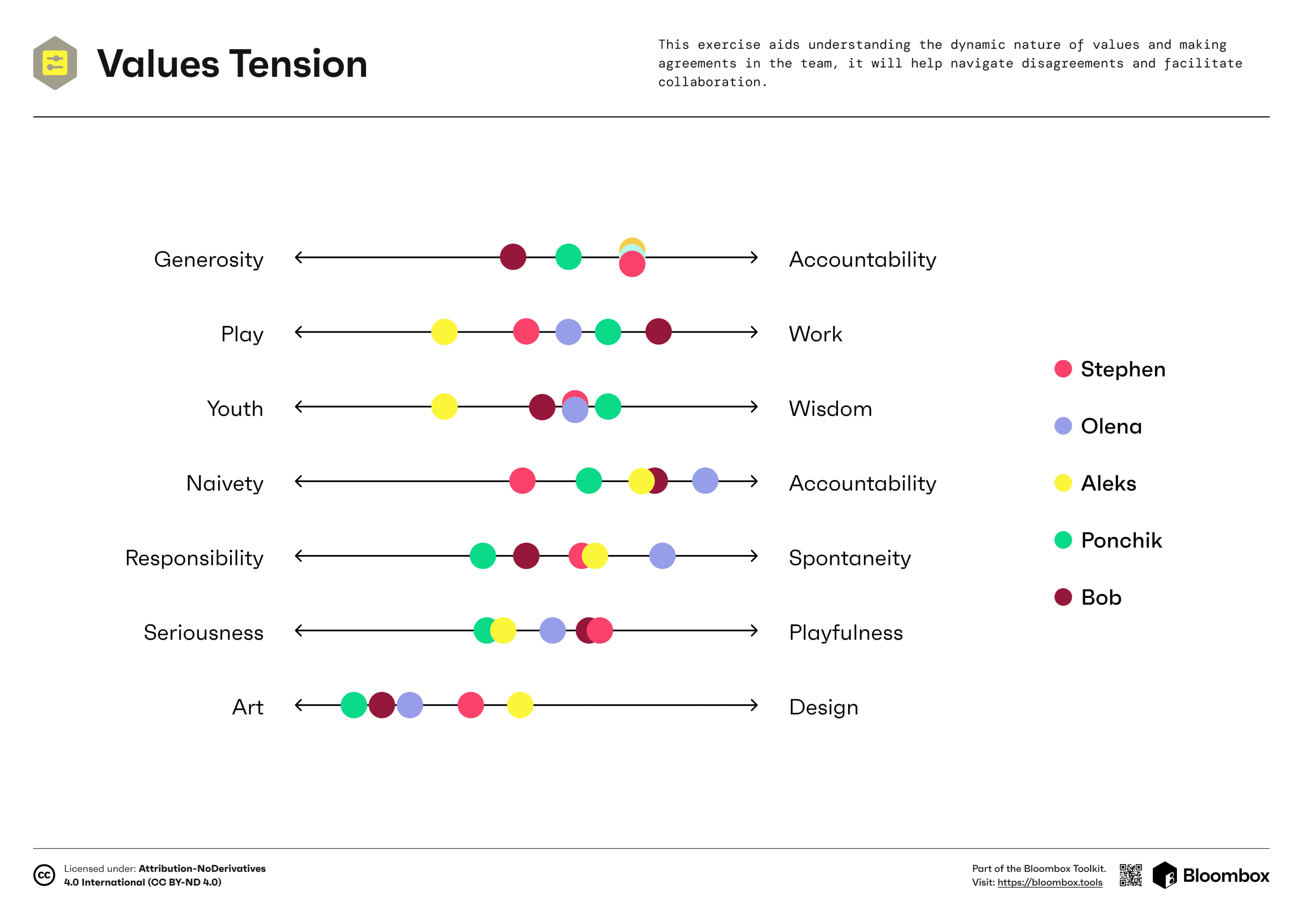 The team used the Values Tension exercise to create a shared set of values to guide their work.